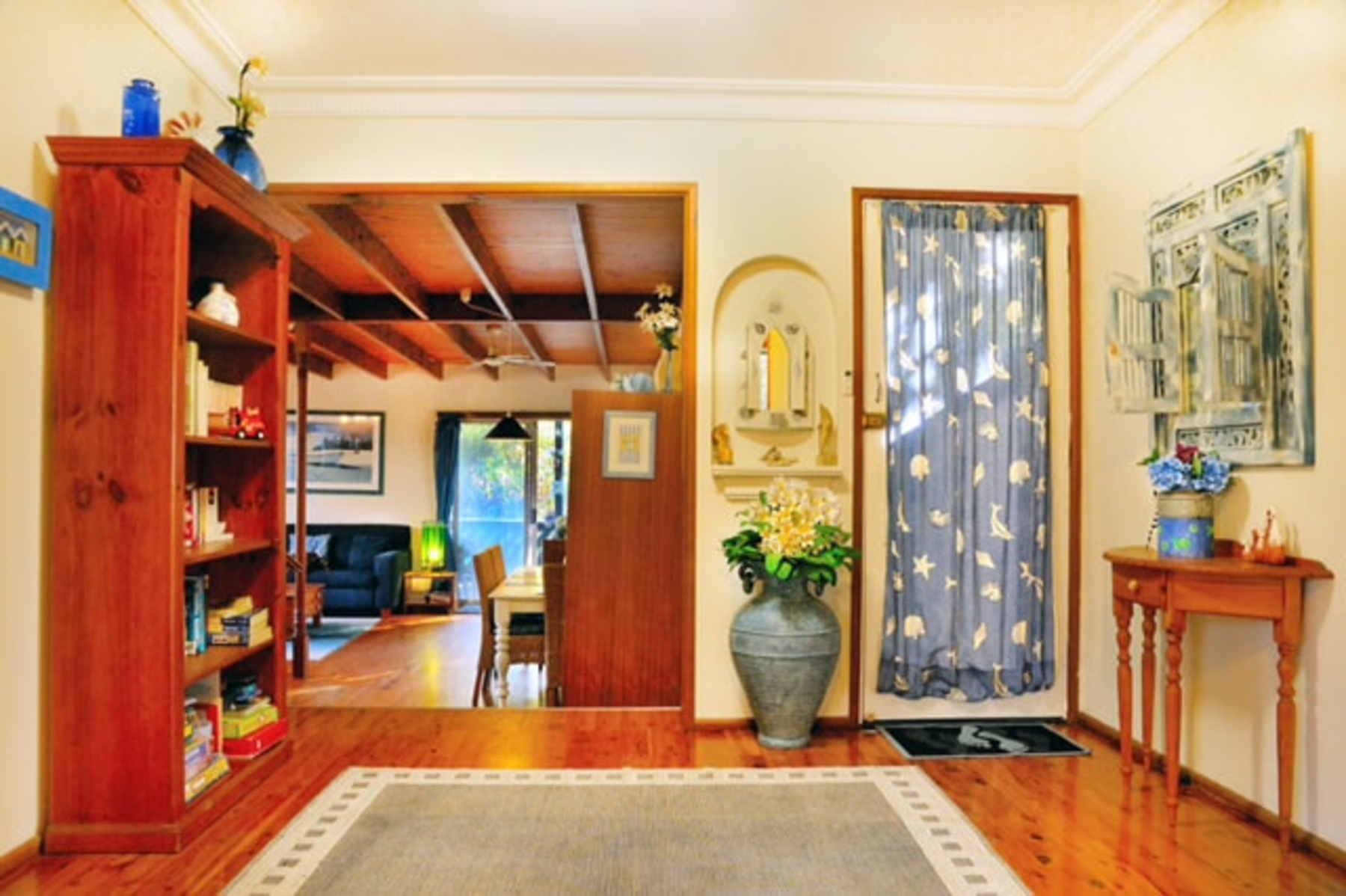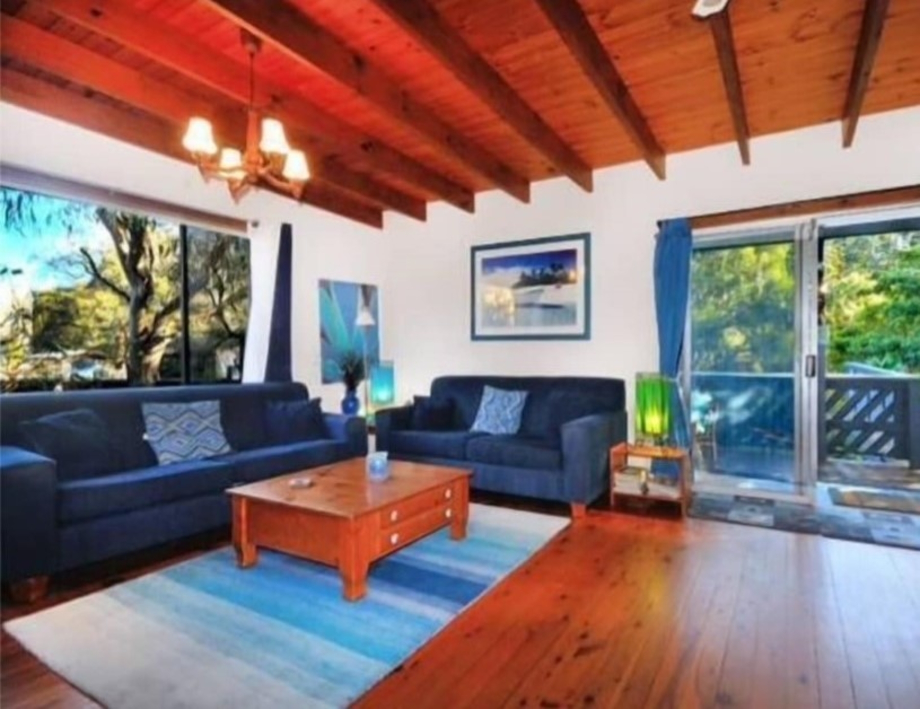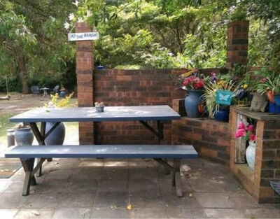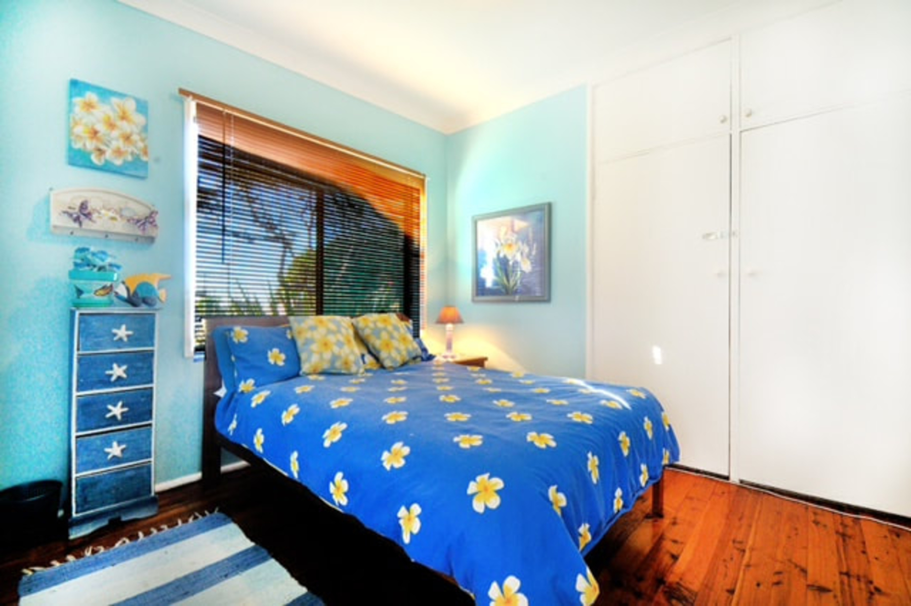 Blue Patch, a well known Culburra beach house for families, couples and pets with an average 5 star rating and close to everything. Blue Patch is a spacious & delightful house decorated both inside and outside in beach blue & garden themes with polished floorboards and decorative rugs throughout. There is also a fully secure, large leafy backyard with hammock, tree swing and separate rumpus room with table tennis and various games. Ideal for couples, families, or a group of friends and your 4-legged companion.