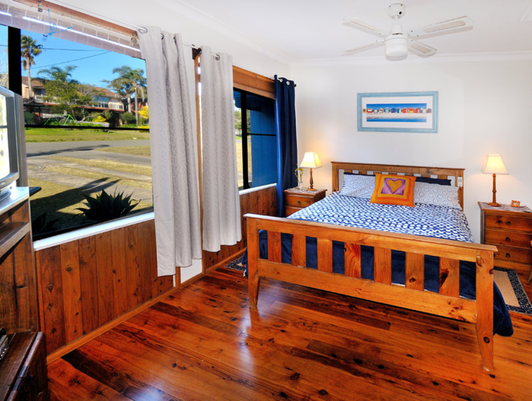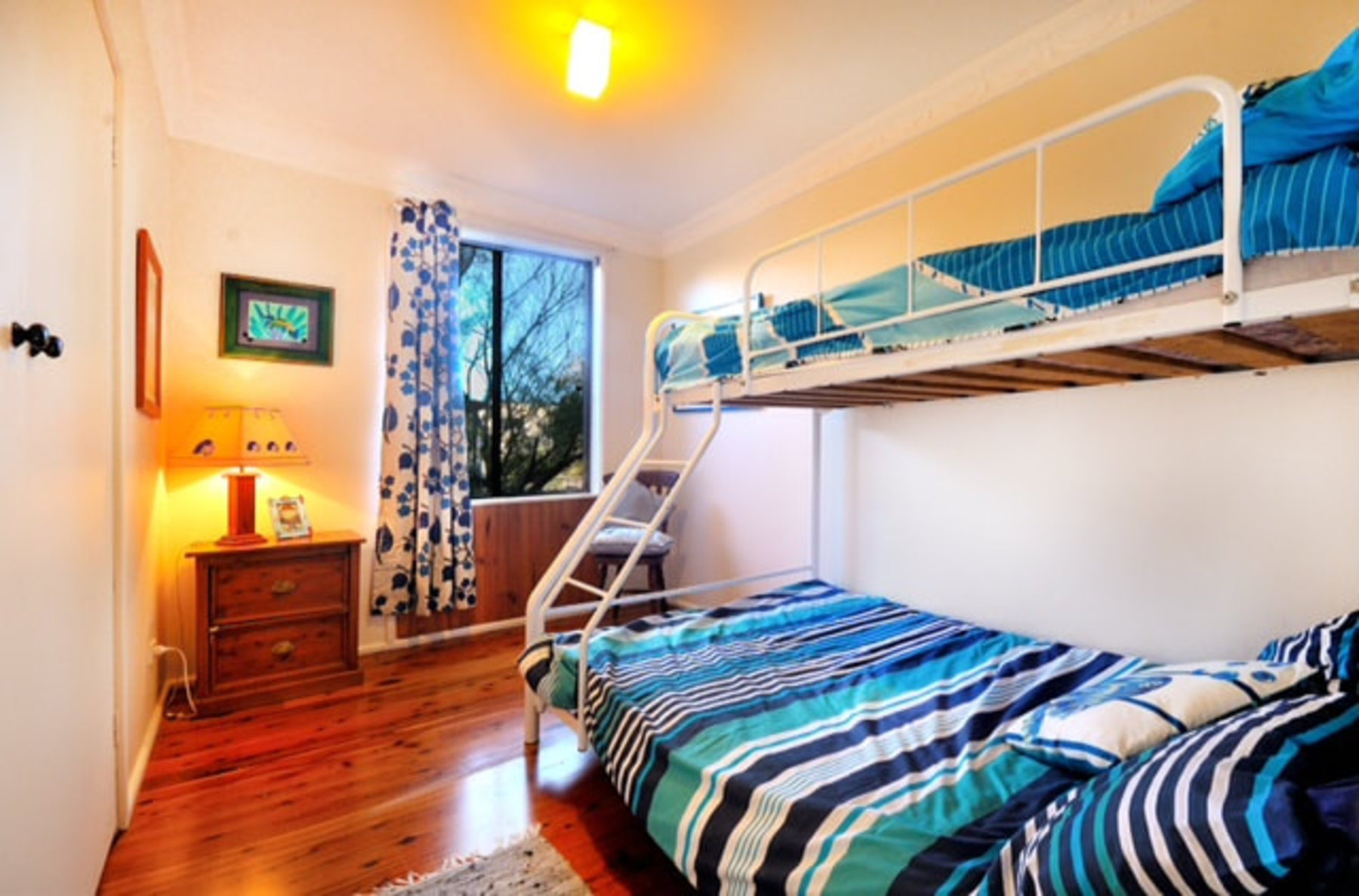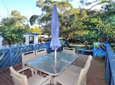 The house is perfectly laid out with a large foyer off which there are 4 bedrooms all tastefully decorated. There are two bedrooms with queen-size beds, the third bedroom has a double bed, while the fourth has a bunk bed, bottom bed is double. One bathroom and 2 separate toilets...The house is an open plan layout, with a fully equipped kitchen including microwave and dishwasher, a dining area and a large living room with sliding doors leading out to a timber decking and large private yard and garden...The verandah decking is partially covered and surrounded by large leafy trees, visited each morning by an array of colourful parrots. There is a 4 burner barbecue on the verandah, outdoor dining setting and cane deck chairs for your comfort. Dine inside or outside on the deck overlooking the garden...There is a fully equipped laundry with washing machine and clothes dryer.....Other inclusions :...TV's and DVDs located in living room and one of the queen bedrooms...Stereo system...A cot and high chair are provided...Doona's, pillows quilts, blankets provided for all bedrooms...Linen and towels can be provided for a small surcharge...Table tennis table/Rumpus games room...Child and adult table/card games, in house DVDs and an array of outdoor ball games...Equipped pantry"for guests to use including tea/coffee/ sugar etc...Pet friendly accessories - dog beds, towels, food bowls, toys, treats and shampoos...LOCATION: 2.5 hours from Sydney and 3 hours from Canberra...This is truly the perfect holiday setting for every age group, situated between a beautiful lake and two unspoilt golden sandy beaches.....THINGS TO DO...Simply grab your towel and walk down to either of the beautiful golden sand beaches, Culburra and Warrain. .Activities include swimming , windsurfing, snorkelling, surfing and fishing. Kayaks and surfboards are available for hire from the local surf school...Alternatively take in the native bird life at Lake Wollumboola a great place for sailing, windsurfing and canoeing. Blue Patch is nestled between all 3 , with the two beaches and lake all only a 5 minute walk away...At Crookhaven Heads, the northern end of Culburra, you can follow a dog friendly walking trail, to see the historic Crookhaven Heads Lighthouse. Another great viewing platform for whale and dolphin spoting is the headland between Culburra and Warrain beaches known as Penguin Head...Great locations for fishing are Crookhaven River, Greenwell Point & Orient Point...The local attractions include Callala Beach and Callala Bay . At Currarong, you'll find many more secluded white sandy beaches, dog friendly seaside bush trails and walks including gorgeous Honeymoon Bay. Take the trail to Point Perpendicular Lighthouse and some of the bays around the coastal terrain to enjoy great scenery across Jervis Bay. All of this within an easy 10min drive from Culburra Beach...Gourmet food and great coffee is now available in Culburra, while delicious seafood is available at Greenwell Point. For those who enjoy wine, the Shoalhaven area boasts some great wineries all an easy drive from Culburra. Spend a day and take the Shoalhaven wine trail...There are 2 National parks within easy reach of Culburra Beach, Booderree and Jervis Bay...National Parks offering fantastic bush walks, isolated beaches and bays...Biking around Culburra is very easy, and there are great scenic bike tracks around the area at Jervis Bay and Callala Bay...Back at the house you can relax in the hammock, read a good book in the deck chairs, partake in a game of table tennis or simply take in the ambience of surroundings...Yes we ARE pet friendly...We know that your dogs are part of the family and whilst they will love the fully enclosed back yard, they are most welcome to lounge around on the timber decking and come into the house and be part of family activities when you are there. A variety of indoor and outdoor dog beds are provided, along with drinking and food bowls, a box of toys, dog beach towels. Spare collars, ID tages and leads are also available in case you forget to bring with you. There are also some lovely complementary natural dog foods, treats and shampoos to start with so your dog really knows he is on holidays
