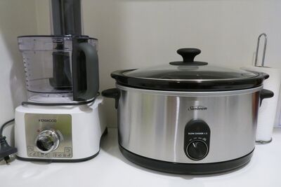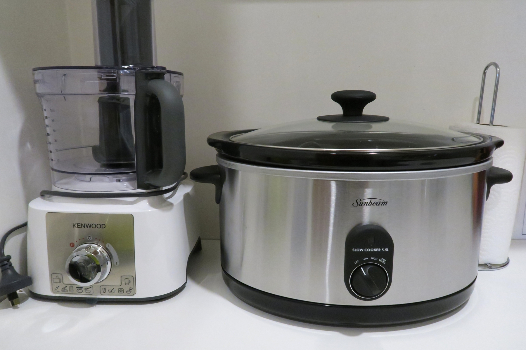 Fully equipped kitchen with DeLonghi Auto coffee machine, food processor, slow cooker, dishwasher, induction cook-top, electric oven and large fridge