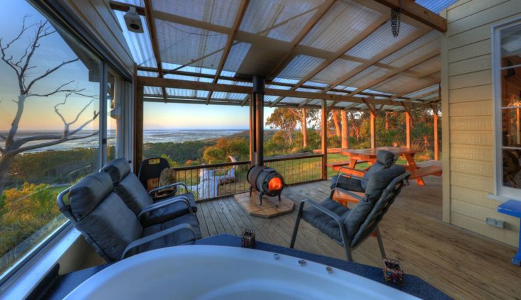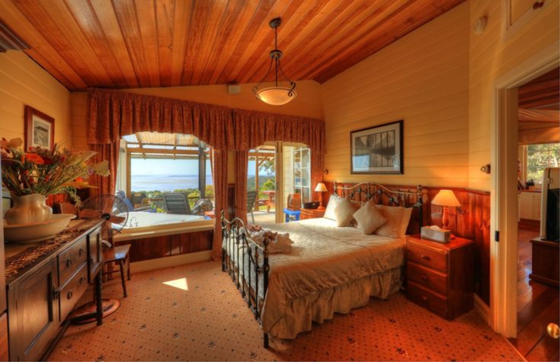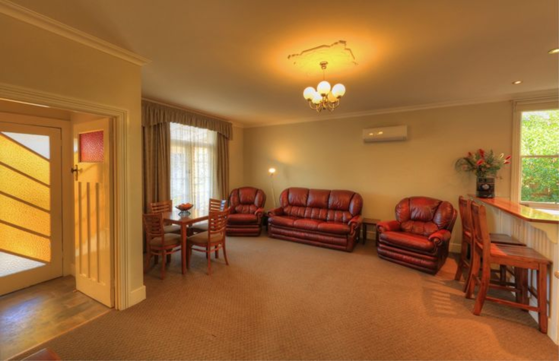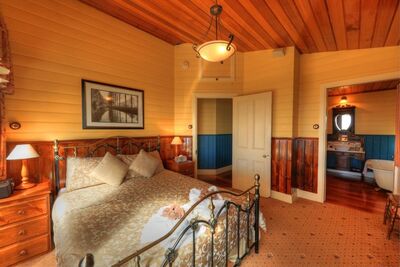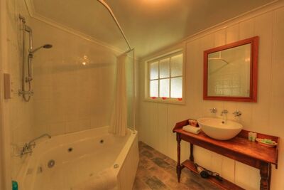 A beautifully restored Californian bungalow home, fully self contained with complete kitchen & laundry facilities. Grace's Spa Cottage has a cosy open wood fire, luxurious 2 person spa, air conditioning, 3 bedrooms (2 with ensuites). The third bedroom has a double & 1 x single bed, (note: even if you book only as one couple, you with have the whole house to yourselves). New granite benchtop in the kitchen, TV, DVD, barbeque, full linen & towels provided. There is a playground and very private back yard, a huge living area with french doors opening out onto a north facing sunny, sheltered verandah. Grace's Spa Cottage has 5 beds and can sleep a maximum of 8 people