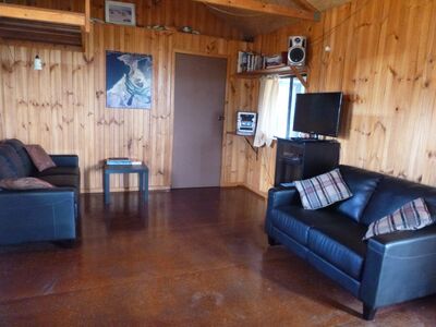 DOLPHIN.......Come share your tranquil holiday at “Dolphin” the pet friendly, eco dream beach house. There is room for friends and family in this new 5 bedroom house. It contains 3 queen size beds, 1 double trio bed and 2 bunk beds...It has 2 toilets, 1 shower and laundry, new kitchen with dishwasher, microwave, reverse cycle airconditioner in the lounge with TV and Xbox 360. Upstairs has a BBQ, kitchen, table tennis table and balcony that captures the beautiful sunsets...It has 180 degree views of the bay, it is set on 70 acres of low lying bushland and has approximately 600m of coastline. It is only 2 km from Venus Bay, so it is a quiet location but not remote or isolated...The power system is run totally on solar energy alone, with an off grid battery setup and auto start back up generator. It is run on rain water, thus only 1 water efficient shower to assist in keeping preserving water...........MELALEUCA.......Melaleuca is an open plan cabin with a small master bedroom containing an orthopedic queen size mattress and there is a semi detached bedroom which has 4 single beds and a double bed. There is a reverse cycle airconditioner and potbelly for heating. A family size stove, microwave, dishwasher, cooking utensils, crockery and utensils are all supplied. A gas BBQ is on the outdoor entertaining area which encapulates the stunning views and tranquility of the place, plus a common outdoor wood BBQ and campfire area. The shower and toilet have hot and cold rain water available. Melaleuca has a large electric fridge/ freezer. There is a TV/DVD and stereo system with CD player for your enjoyment. A laundry is available for those staying 7 days or more. It has a large veranda perfect for relaxing, if you need a low key, relaxing holiday, without the bells and whistles, then come and enjoy your tranquil holiday here...Plus it has a lockable dog kennel for your pets holiday.