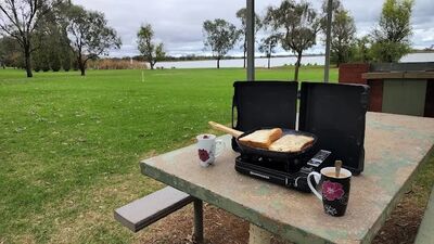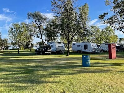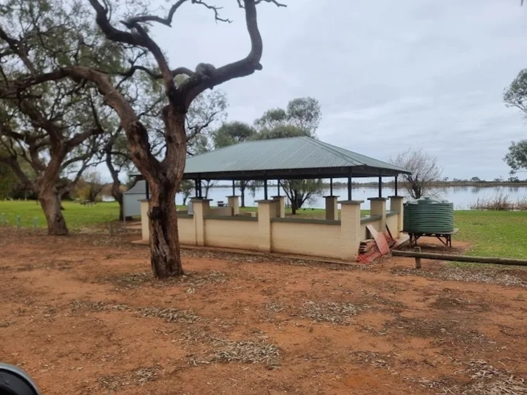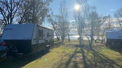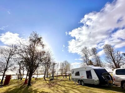 Family Camping on the edge of beautiful Lake Cullulleraine. Safe swimming, canoeing & fishing for the whole family. Large grassed camp sites with plenty of shady trees .Powered & unpowered available. Lock 9 easy access approx. 10 minutes to the Murray River. Great family camping at an affordable price.