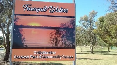 Cullulleraine family camping on the edge of beautiful Lake Cullulleraine. Safe swimming, canoeing & fishing for the whole family. Large grassed camp sites with plenty of shady trees .Powered and unpowered available. Lock 9 easy access approx 10 minutes to the Murray River. Great family camping at an affordable price at Tranquil Waters Cullulleraine.