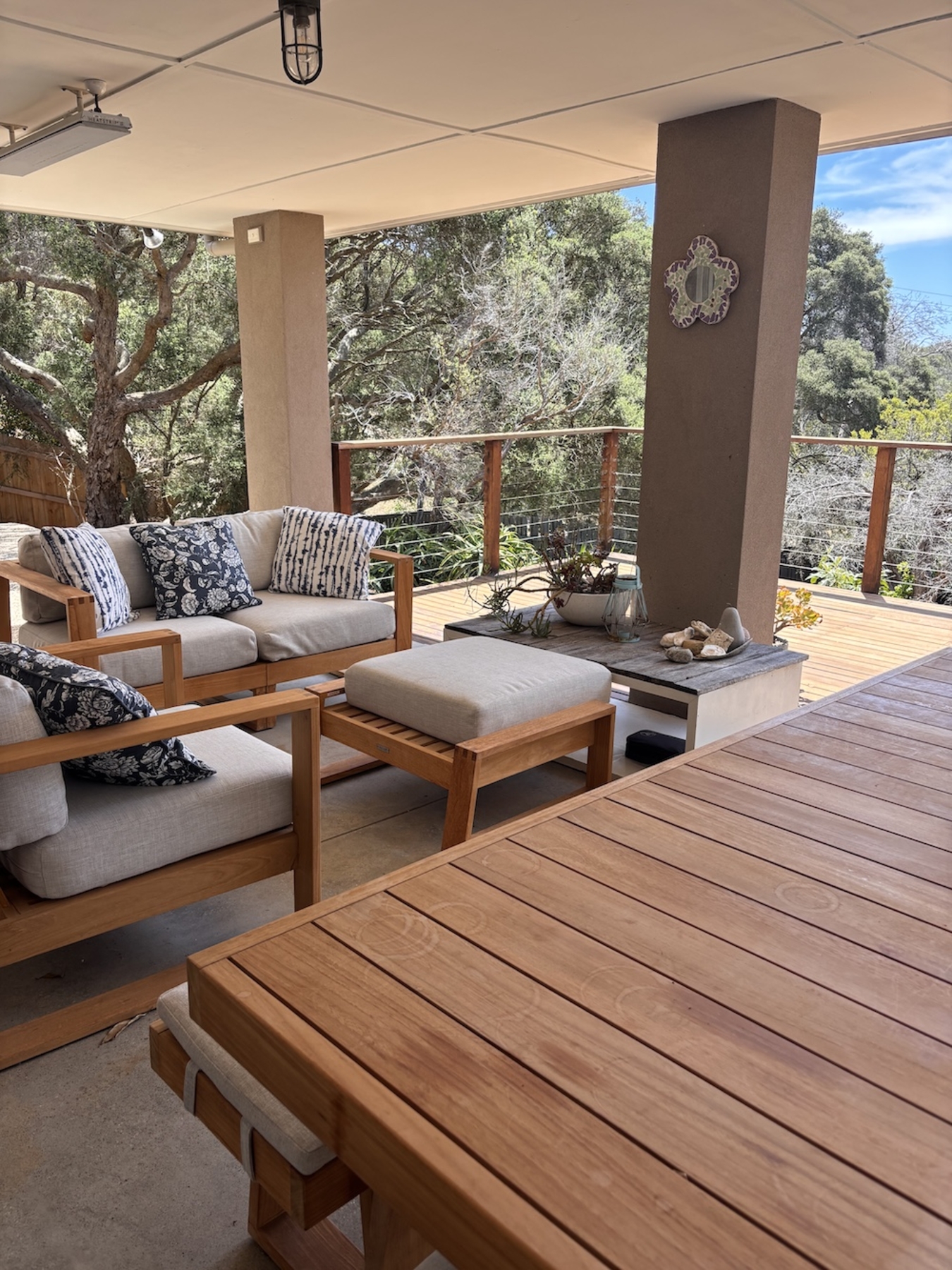 With its fully secured multi-leveled gardens, it’s the perfect retreat for the whole family, including our four-legged furry friends. There are multiple parking options on this corner block, and there’s even room for a boat. The house sits high on the block with a large undercover deck that looks out over the treetops. The kids love exploring the garden with all it’s multiple and winding paths while we soak up the sun on the deck. There’s always time to get into a good book while the kids are busy having adventures.