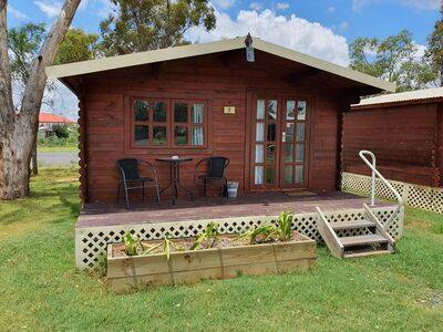 Pet friendly caravan park with grassy shady drive through caravan sites and ensuite cabins
